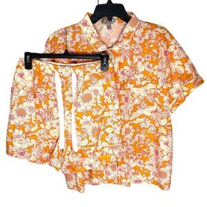 J. CREW Women’s Short Sleeved Poplin PJ set orange floral size xxl