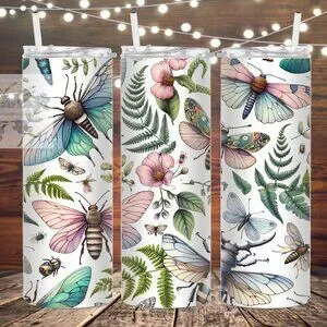 Floral Boho Moth Stainless Steel Tumbler