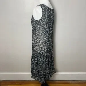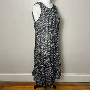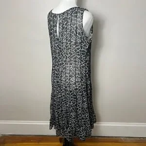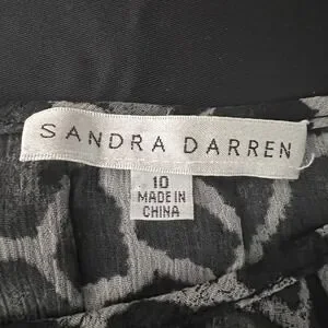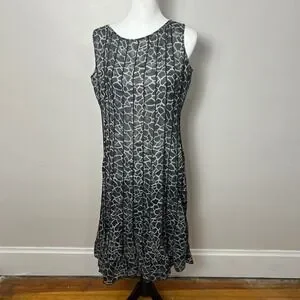 Keywords: Sandra Darren dress, midi dress, animal print dress, pleated dress, sleeveless dress, casual dress, women's dress, size 10 dress, gray dress, black dress, party dress, brunch dress, garden party dress