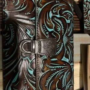 Patricia Nash Brown and Turquoise Embossed Leather Bag Set