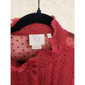 Anthropologie Sleeveless Sheer Tunic Top S Mesh embroidered Valentines
