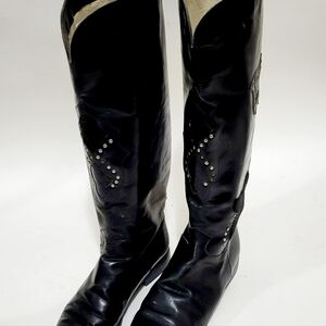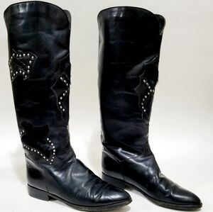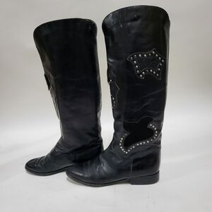 Charles David Black Leather Boots Women 9 1/2 Flat Heel
