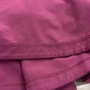 Lululemon Pace Rival skirt in a size 14. I would call it magenta pink. Built in undershorts. Great condition with some pilling between the legs and the teensiest bit of pulls on the outside (see closeups).