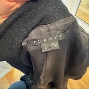 Theory wool cashmere angora Black Long Coat single breasted size small back slit