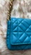 This stylish teal quilted shoulder bag features a luxurious gold chain strap, perfect for adding a touch of elegance to any outfit.