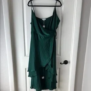 This elegant green wrap dress is perfect for any occasion. Its flattering design and rich color make it a must-have in your wardrobe.