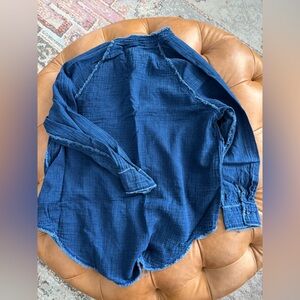 Denim colored button down top (oversized) with matching shorts. Can wear separate or together. Perfect for lounging or as a swim coverup. Great condition- no holes rips or stains. Deal on bundles. Smoke free home.