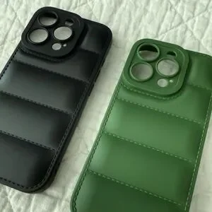NWOT These smartphone cases feature a distinctive ribbed texture that enhances grip while providing a modern look. Designed for iPhone 16 Pro, they include precise cutouts for the camera system, ensuring full functionality. Available in sleek black and dark olive green colors, these cases offer both style and protection.