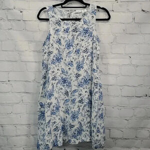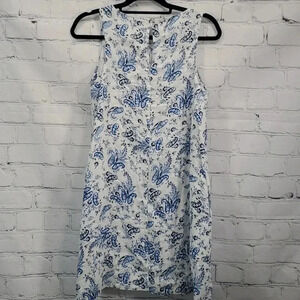 Lucky Brand Blue and White Floral Paisley Coastal 100% Linen Shift Dress Size XS