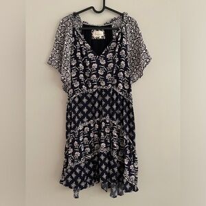 By Anthropologie Robin tiered mini dress blue and white floral large
