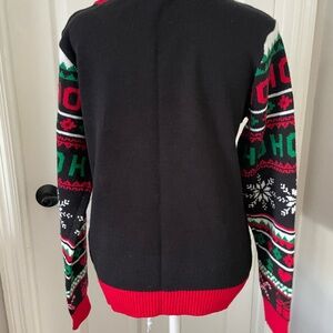 Festive & bright relaxed fit grumpy cat "This Is As Merry As It Gets" Christmas sweater, size L (11-13), pullover, black with red, green & white design, preowned, very good condition, pit to pit 20", length 24"