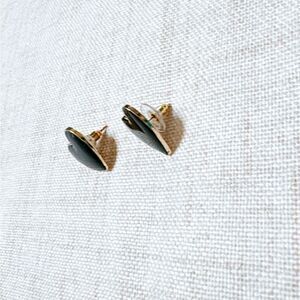 Black enamel heart stud earrings in gold tone hardware