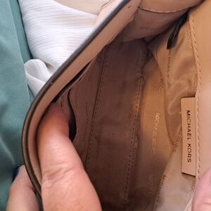 Bag has a long adjustable strap with gold chains. Outside pocket, inside card holders. Inside is clean. Original price of bag before painting is $229