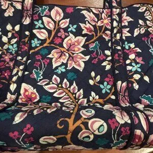 With inner pockets and a large size, this tote is perfect for carrying all your essentials. Made from cotton and designed in Vietnam, this tote is part of the Vera Bradley Iconic product line.