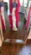 Luxurious red satin caftanfeather trim. Perfect for a glamorous night out!
