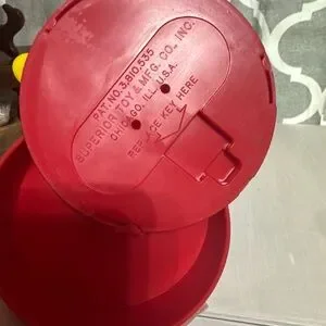 This delightful vintage 1986 Disney Mickey Mouse gumball bank features the iconic character in vibrant red and black colors. With its classic design, it's perfect for any Mickey Mouse enthusiast.