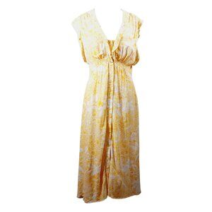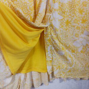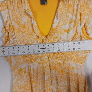 Taylor, Yellow & White Floral Midi Dress, Med., Lined, Ruffled Neck & Sleeve