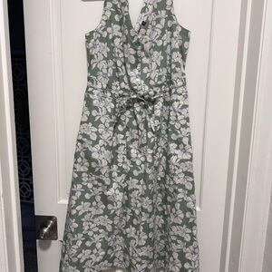 GAP White and Green Halter Midi Sundress