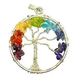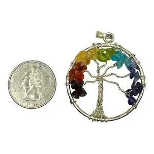 Artisan Wire-Wrapped Tree Pendant Multi Gemstone Vintage 70s Handcrafted EUC