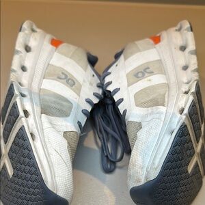 Stylish On Running sneakers in white and orange. Perfect for casual wear.