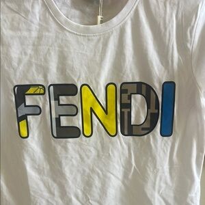 Fendi Kids White T-Shirt with Multicolor Logo New With Tag