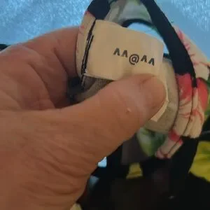 Stylish floral dress with cutout design. Features vibrant colors and a unique pattern.