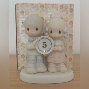 Celebrate love with the Precious Moments Anniversary Figurine. This charming piece features a couple holding a commemorative plate, perfect for marking special occasions. The cream and pink colors add a touch of elegance to any home decor.