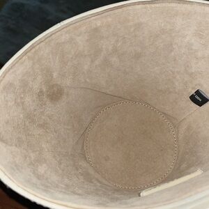 Gently used but still in great condition! There’s a minor mark on the interior (see image) also due to storage the top handle doesn’t stand straight up (you can’t tell while carrying just when it’s put down)