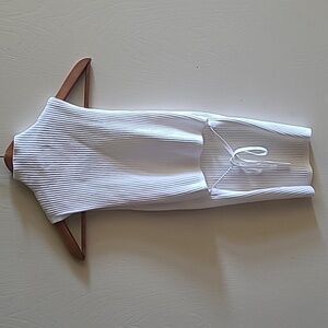Babaton Sculpt Knit Back Tied Sleeveless Top, Sz S. In like new condition. White ribbed sleeveless top. Perfect for layering or wearing alone.