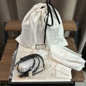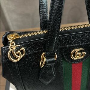 Gucci Black leather Ophidia handbag in good used condition. It has a small scratch that I tried to capture in second and third photo not a big deal but want to be transparent as well as a tiny lipstick mark on the inside. I’m sure it can be cleaned out. It comes with: box, dust bag, detachable strap, care instructions and plastic packaging for the strap. I am the original owner purchased in 2023. I ship fast and all my items are 💯 authentic. I rarely reach for this bag so wanting it to go to someone who will put it to good use! It is a great size that can be dressed up or down to fit your needs. Open to reasonable offers!