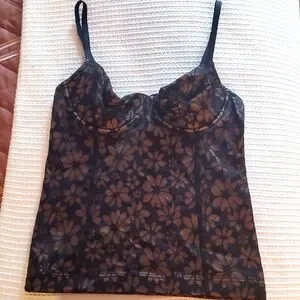 Victoria Secret floral underwire lace cami top is Super Sexy for Summer or a night out. it is super soft and has a tan layer so you cant see through as shown in pictures. This Elegant black camisole top with a floral design is Perfect for a stylish and comfortable look.