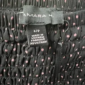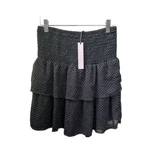 Black Pink Polka Dot Mini Skirt Tiered Ruffle Stretch Size S