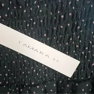 Chic black and pink polka dot skirt with a stylish tiered design. Perfect for any occasion.