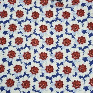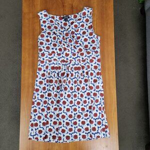 - Navy dress with white and red floral pattern