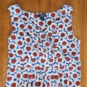 Lands' End Faux Wrap Fit and Flare Sapphire Floral Print Sundress - Large Petite (14-16)