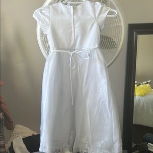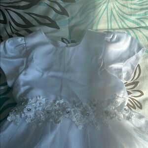 Pretty & delicate girls white dress size 3. Can be used for baptisms, weddings, flower girls or any other formal occasion. Headband with a cute bow attached. The design adds a touch of sophistication. Never worn (return period elapsed). See measurements in photos.