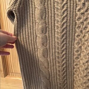 Stay cozy and stylish with this elegant cable knit sweater. Perfect for any occasion, this tan sweater offers both comfort and warmth. Runs a little large. New with tags.