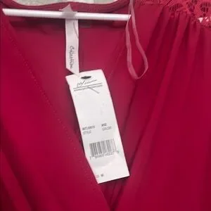 This elegant red jumpsuit from NY Collection features a plunging V-neckline and sheer lace sleeves, adding a touch of sophistication. The fitted waistline creates a flattering silhouette, while the wide-legged pants offer a comfortable and stylish fit.