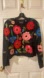 Features a vibrant embroidered floral design on a classic black background. Perfect for adding a pop of color to your wardrobe.