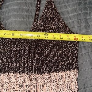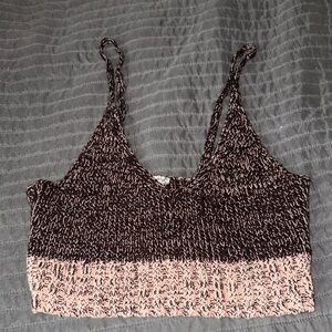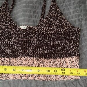 Elevate your wardrobe with this chic brown and cream knit crop top. Perfect for casual outings or layering, this top offers both comfort and style. Never worn tried on only doesn’t have adjustable straps
