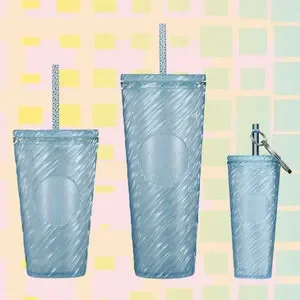 From the beach to a bike basket, these blue cold cups will sparkle and shine like crystal clear waters.