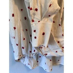 EUC Rag & Bone Lei Floral-Print Blouse size Medium. Off-white color with red and black flowers. CAR