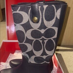 Stylish blue and gray Coach rain boots . Size 9 only used a few times. Like new! In original box