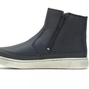 Harley-Davidson® Women’s Silvana Riding Appropriate* Black or Tan Motorcycle Boots, Black-D84608, Tan-D84609. On and off the bike, these dual zipper-entry urban street-styled leather boots are styled for all-day wear. Featuring a flat sole, they cross easily from the bike to any outdoor activity where being light afoot and casually cool is the goal – for running, walking, jumping, riding, or dancing. These boots will add a pleasant mix of comfort and sassiness to a variety of casual outfits. With white contrasting rubber soles, the rounded toe features an addition layer of leather from the toe up through the vamp. These boots are easily identified as your favorite brand by the Bar & Shield® debossed logo near the heel. With YKK® dual locking inside and outside facing zippers, stepping into these boots is a breeze. The uppers are made with full-grain leather and the boot has a comfy full-length mesh lining. The street side rubber soles are white with a classic orange Bar & Shield® logo at the instep. The boot's sole, insole and upper are bound using cement construction processes, a time honored and durable method that allows for a flexible and easy stride. Total height: 6" Shaft height: 4.5", Heel height: 1.5".