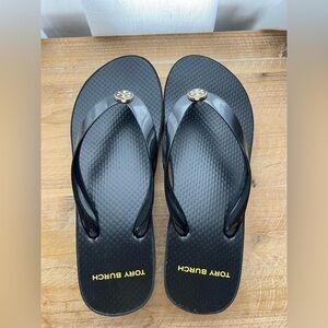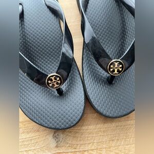 New Tory Burch Women's Cut-Out Wedge Flip-Flops in Perfect Black Size 6