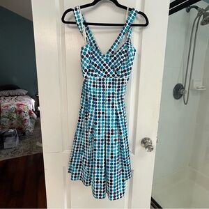 Calvin Klein size 6 dress. You can feel the quality with this dress! Cotton and spandex. Polka dots in blues. Zipper in back.
