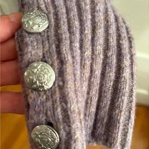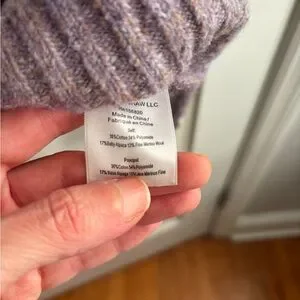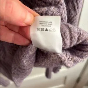 Soft baby alpaca pointelle lace knit puff sleeve lilac sweater. Perfect for any occasion.
