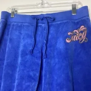 Juicy Couture Blue Velour Wide Leg Track Pants USA Lg