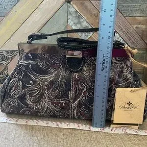 This elegant paisley handbag features a sophisticated design with a blend of rich colors. Perfect for adding a touch of class to any outfit.100% Italian Leather.