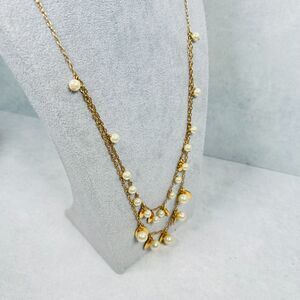 J. Crew Necklace Layered Charm Beaded Faux Pearl Gold Tone 36" Elegant Modern
